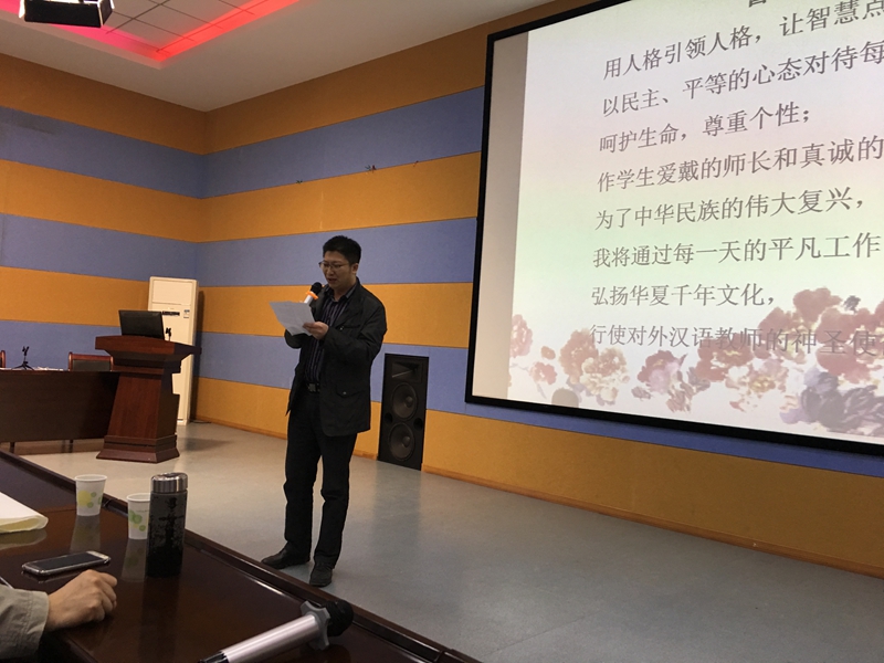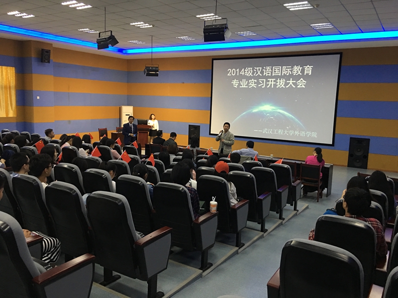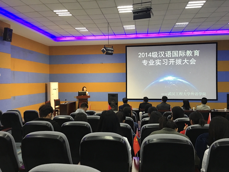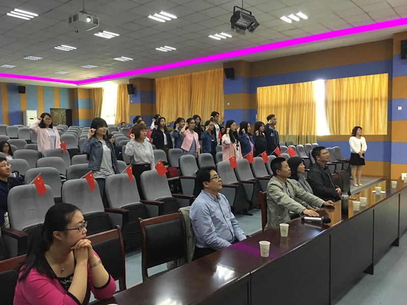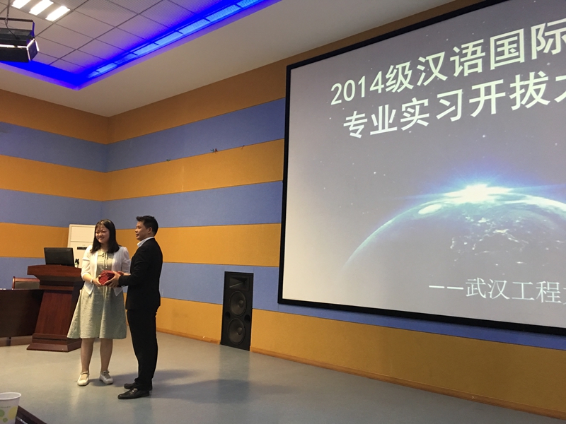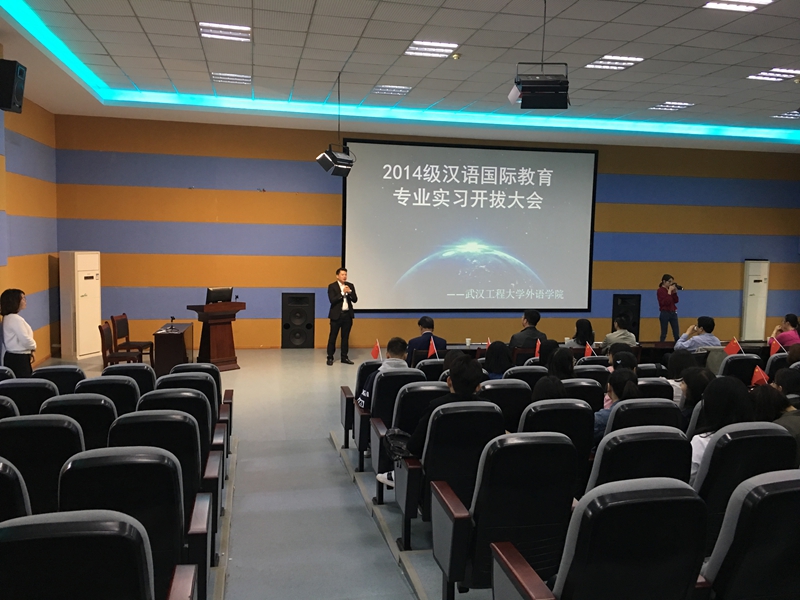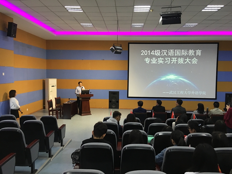 4月28日上午,文科类313教室举行了14级汉语国际教育专业赴泰国实习开拔仪式。出席仪式的有校领导纪委书记徐曼、教务处分管实践教学工作副处长于传浩、外语学院院长张媛媛、外语学院分管教学副院长杨建兵、合作方盛唐龙文集团唐小冬先生、徐创业先生、部分外语学院教师以及即将赴泰国实习的19名14级汉语国际教育专业学生。