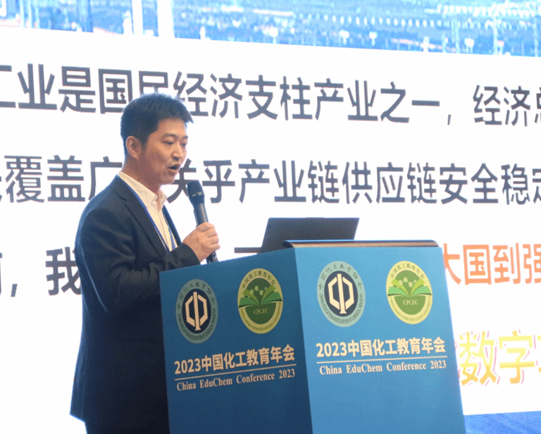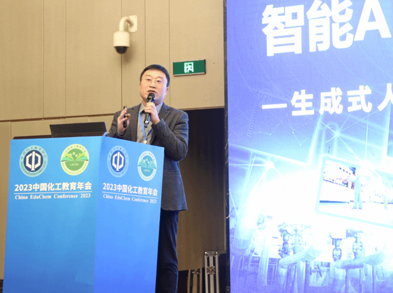 赵埔副总经理作题为“生成式人工智能AIGC助力化工专业教学的思考与探索”的论坛报告,以人工智能技术为切入点,探讨了生成式人工智能在教育教学中的应用,剖析了化工专业教学大模型构建对人才培养的价值和教学应用探索。