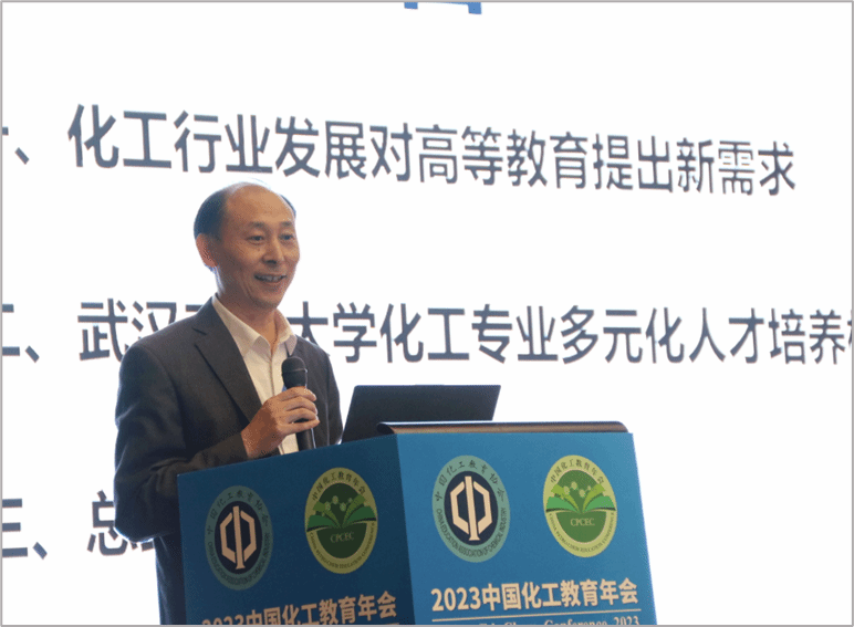 副校长喻发全教授代表学校作题为“智能绿色共享-化工多元人才培养策略与探索”的论坛报告,阐述了目前化工行业发展智能化、绿色化、高端化与个性化的“四化”现状,从国家需求和历史发展角度归纳了当下高等教育的静态、动态目标以及行业需求对高等教育提出的“数智化”新挑战,分享了我校化工专业多元化人才培养模式的探索与实践经验。